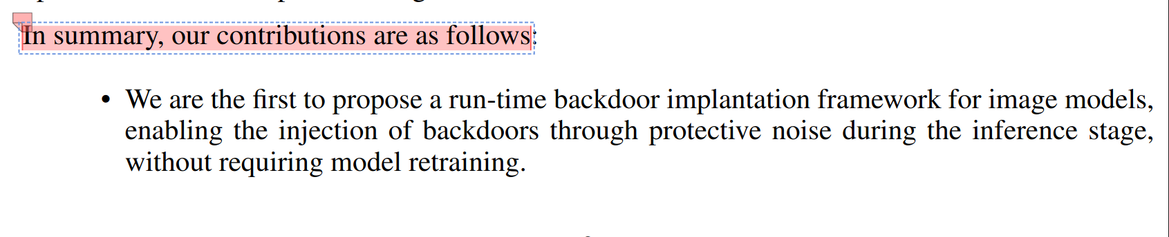 利用的是后门可以指定激活一些神经元的特性,所以可以通过激活指定神经元来达到保护指定的区域的效果,同时保证其他区域的编辑和生成不受影响,确实很像后门